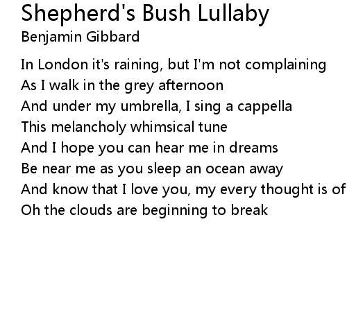 | Song | Shepherd's Bush Lullaby |