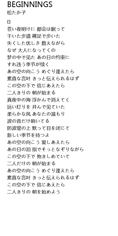 | Song | BEGINNINGS |