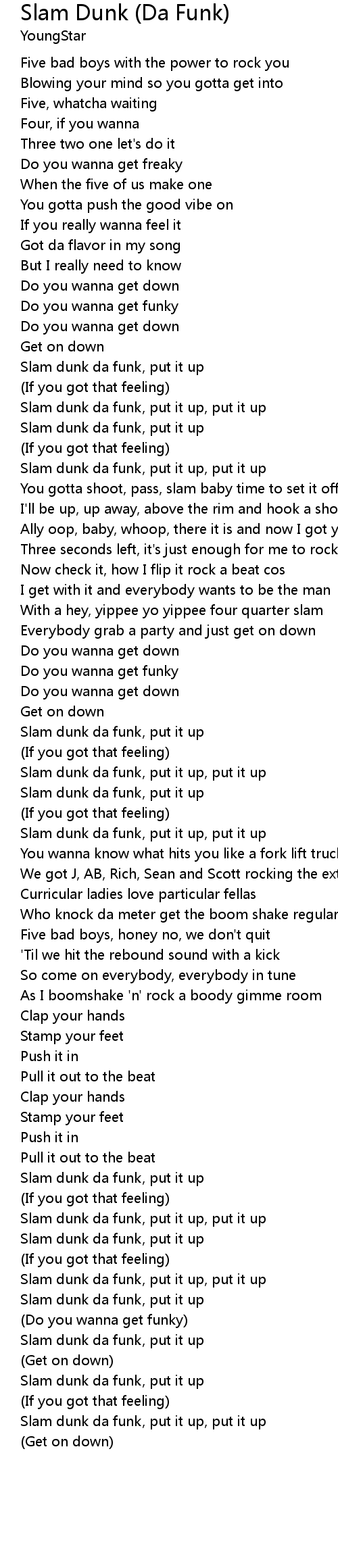 Slam dunk da funk, put it up, put it up |