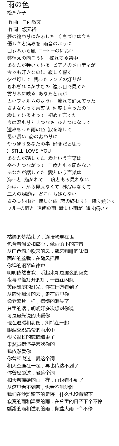 | [03:53.64] | フル─の雨と 透明の雨 激しい雨が 降り続いて |