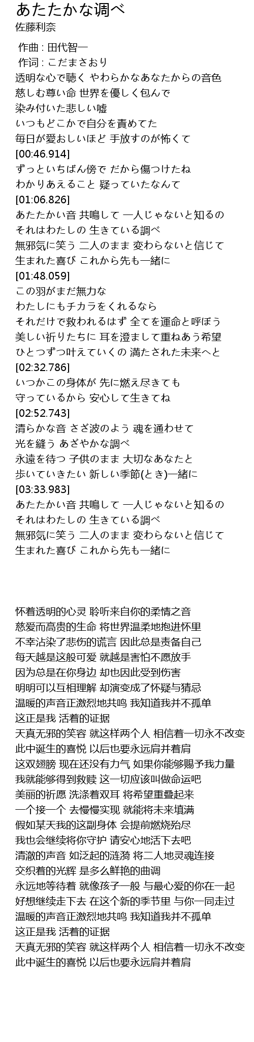 | [01:36.822] | 生まれた喜び これから先も一緒に |