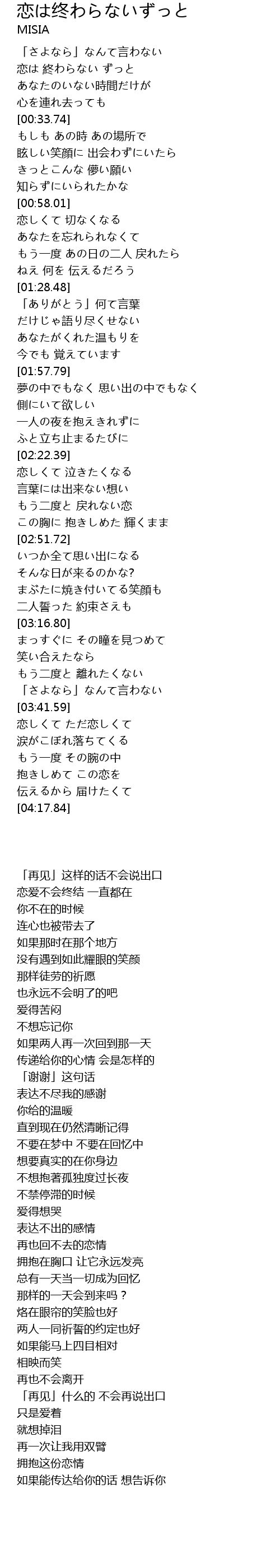 恋は 終わらない ずっと |