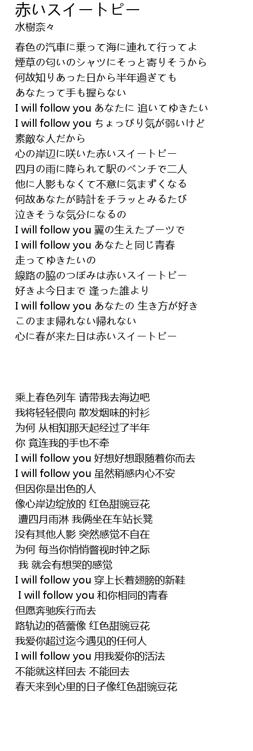 | [02:35.95] | 線路の脇のつぼみは赤いスイートピー |