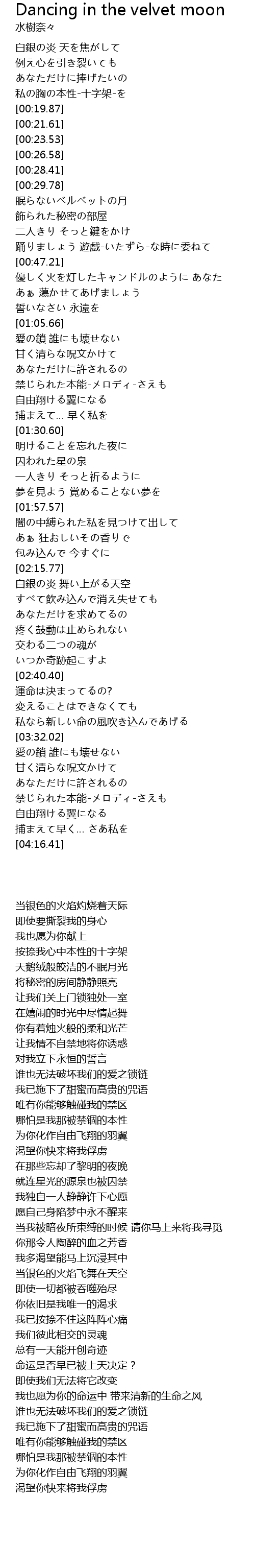 | [00:30.31] | 眠らないベルベットの月 |