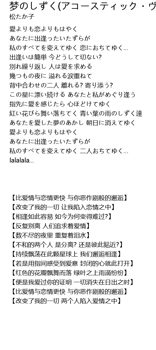 | [02:48.10] | 私のすべてを変えてゆく 二人おちてゆく… |