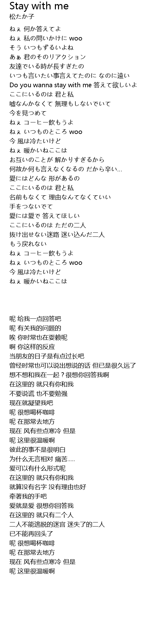 | [00:58.00] | Do you wanna stay with me 答えて欲しいよ |