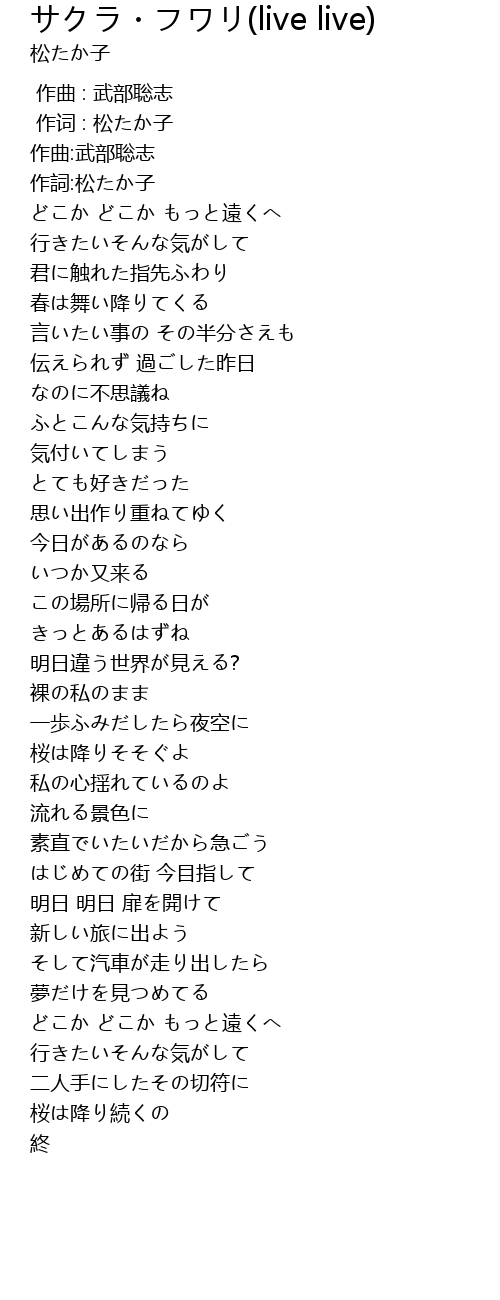 | [03:17.57] | 桜は降り続くの |