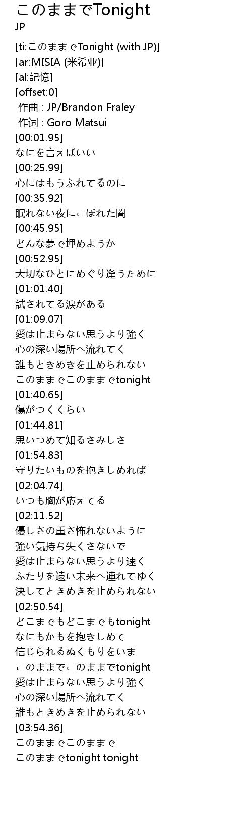 | [ti:このままでTonight (with JP)] | |