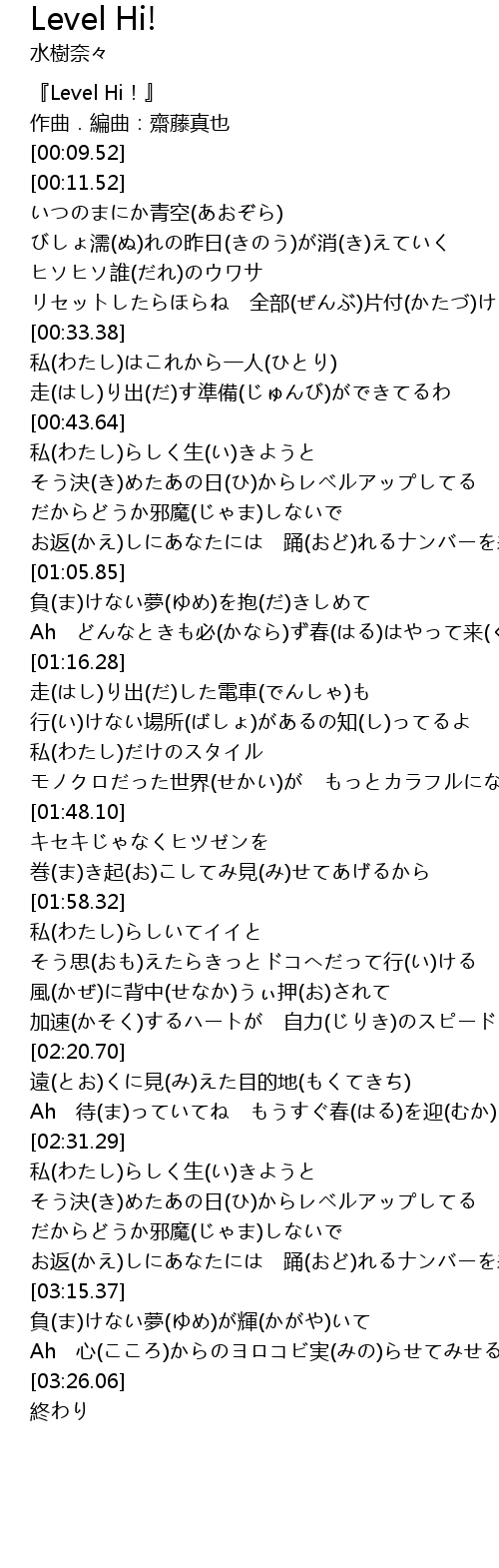 | [00:01.52] | 『Level Hi!』 |