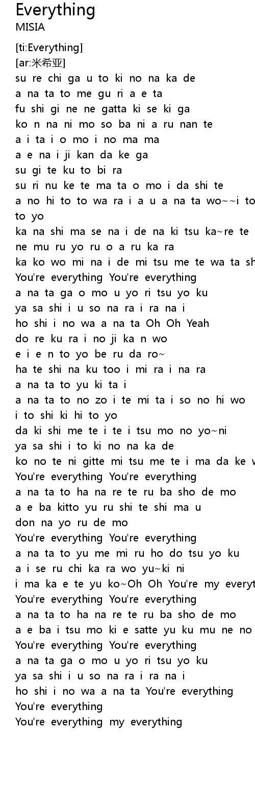| [04:44.46] | i ma ka e te yu ko Oh Oh You' re my everything |
