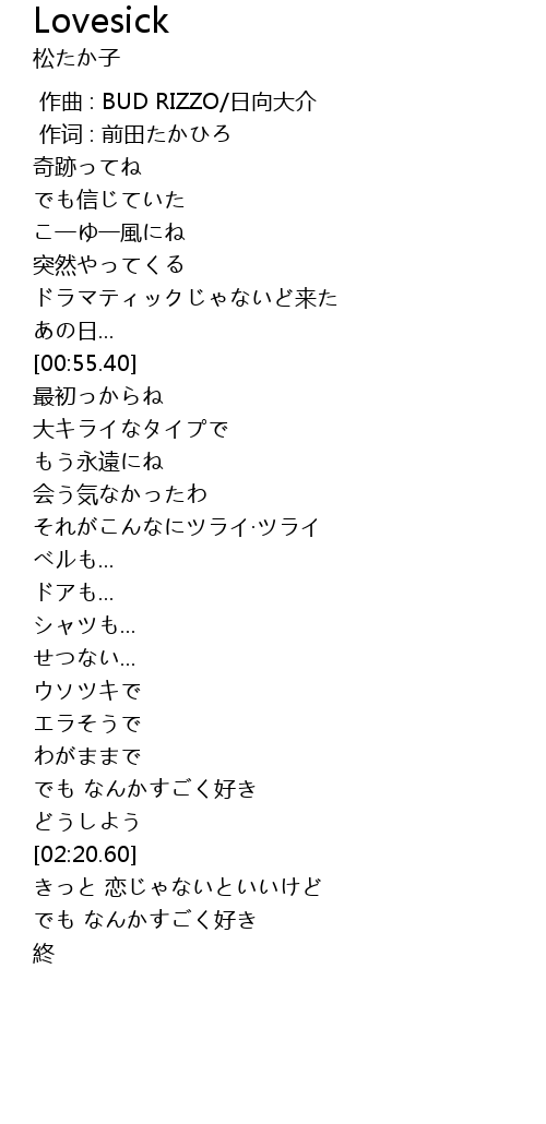 | [02:38.48] | きっと 恋じゃないといいけど |