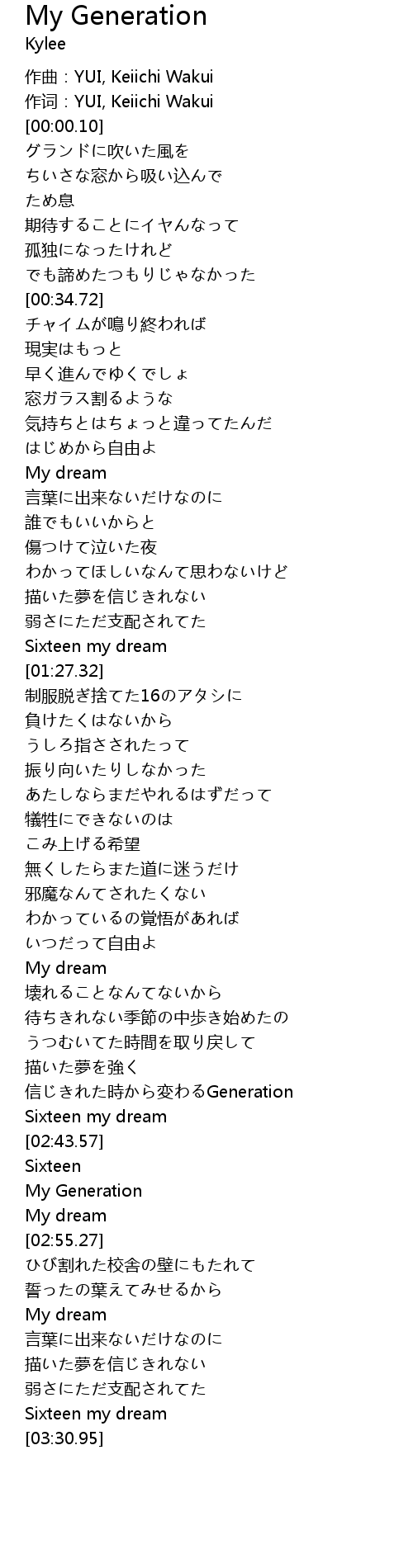 | [00:00.05] | 作词:YUI, Keiichi Wakui |
