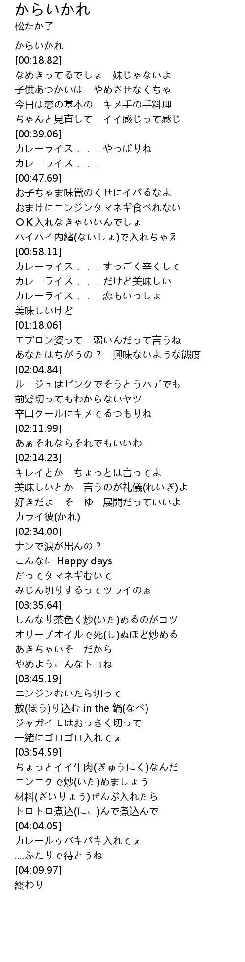 | [00:03.38] | からいかれ |