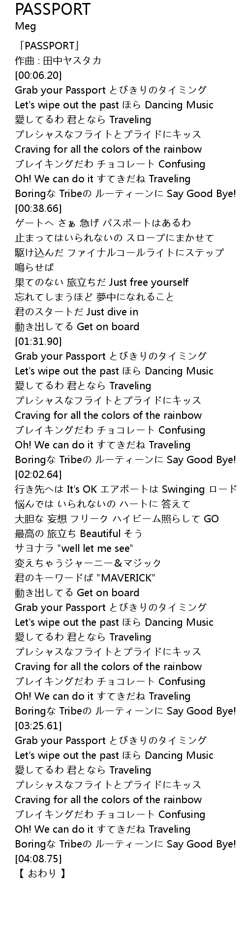 | [00:01.20] | 「PASSPORT」 |