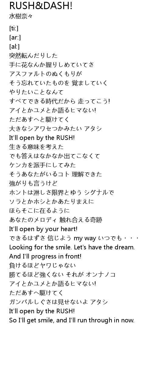 | [00:20.30] | すべてできる時代だから 走ってこう! |