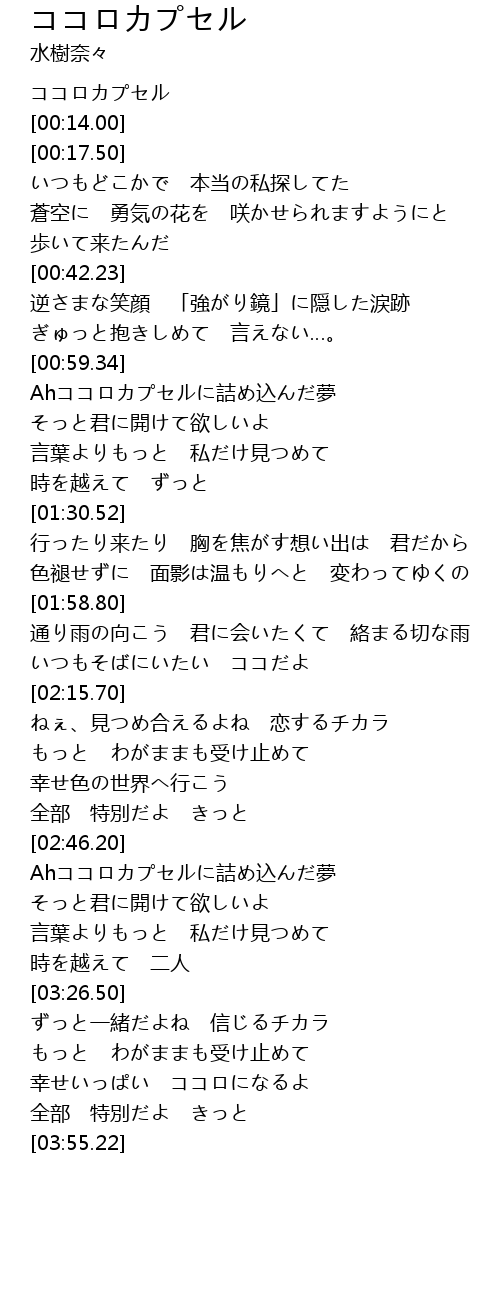 | [01:00.10] | Ahココロカプセルに詰め込んだ夢 |
