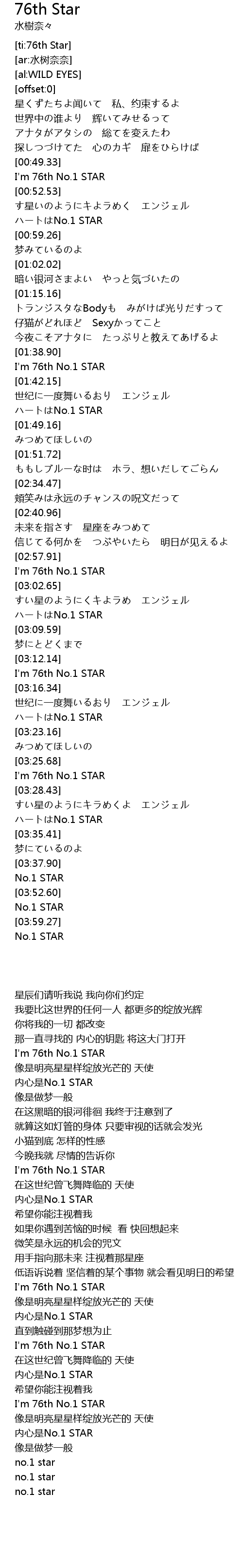| [03:00.16] | I' m 76th No. 1 STAR |