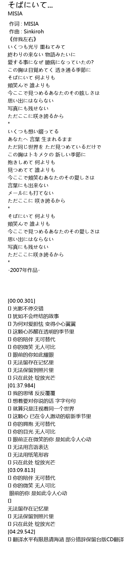 | [04:00.480] | 今ここで見つめるあなたのその愛しさは |