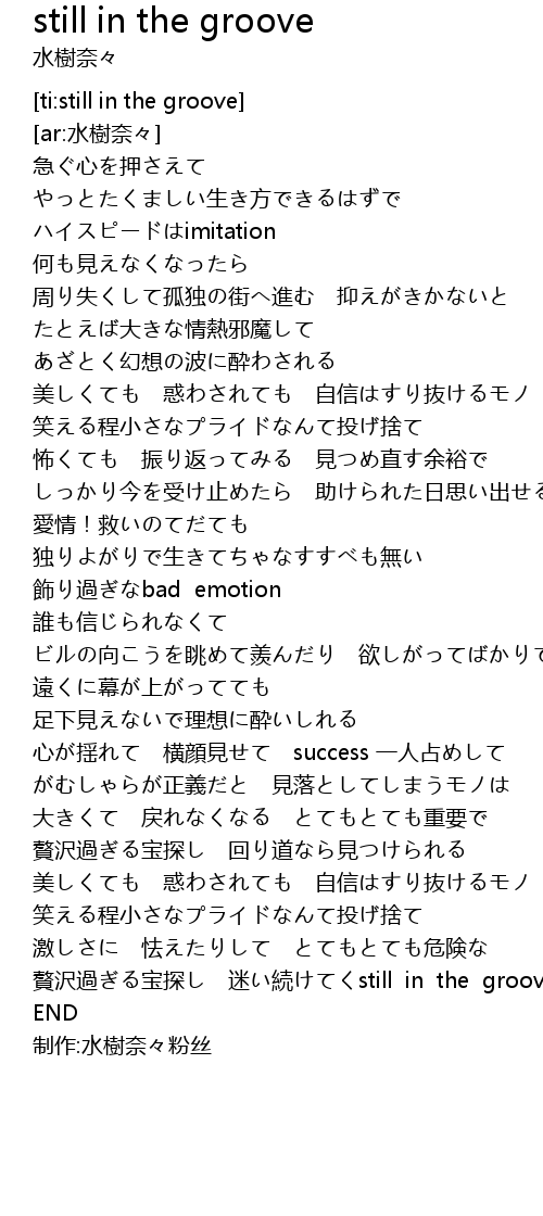 | [03:58.40] | zhuì zé guò bǎo tàn mí xu still in the groove |