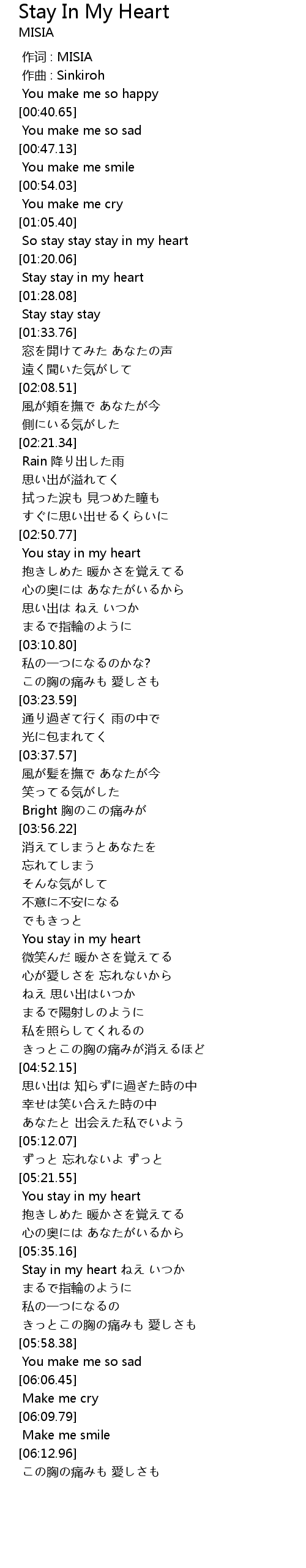 | [05:35.96] | Stay in my heart ねえ いつか |