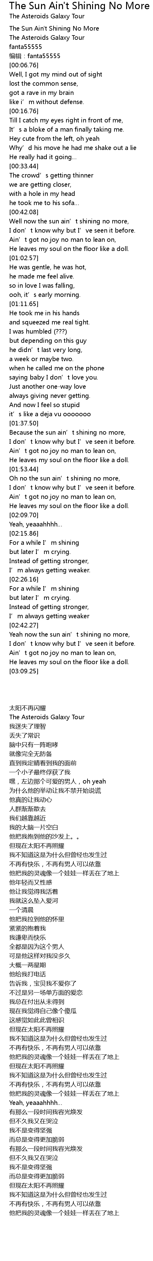 | [01:53.69] | Oh no the sun ain' t shining no more, |