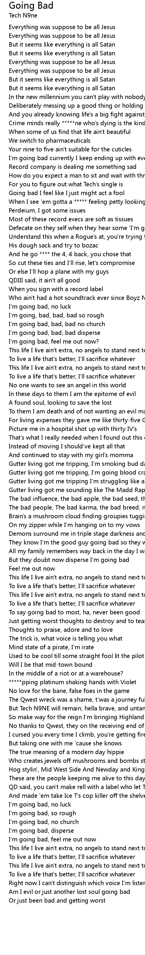 I'm going bad, no church |