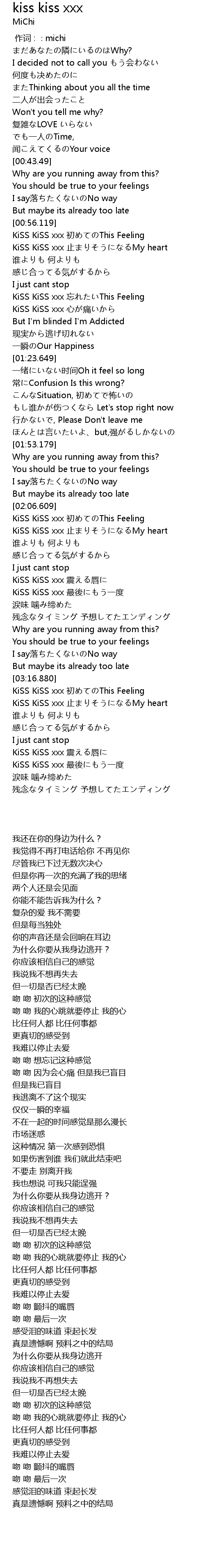 | [03:34.260] | KiSS KiSS xxx zuì hòu yí dù |