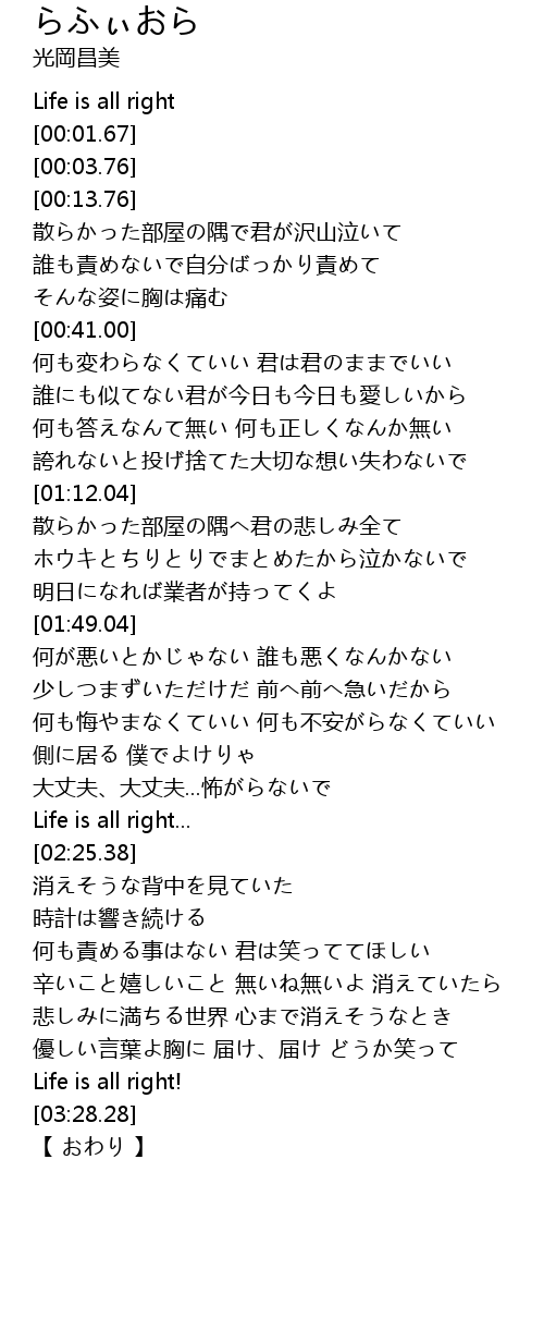 | [02:04.34] | 何も悔やまなくていい 何も不安がらなくていい |
