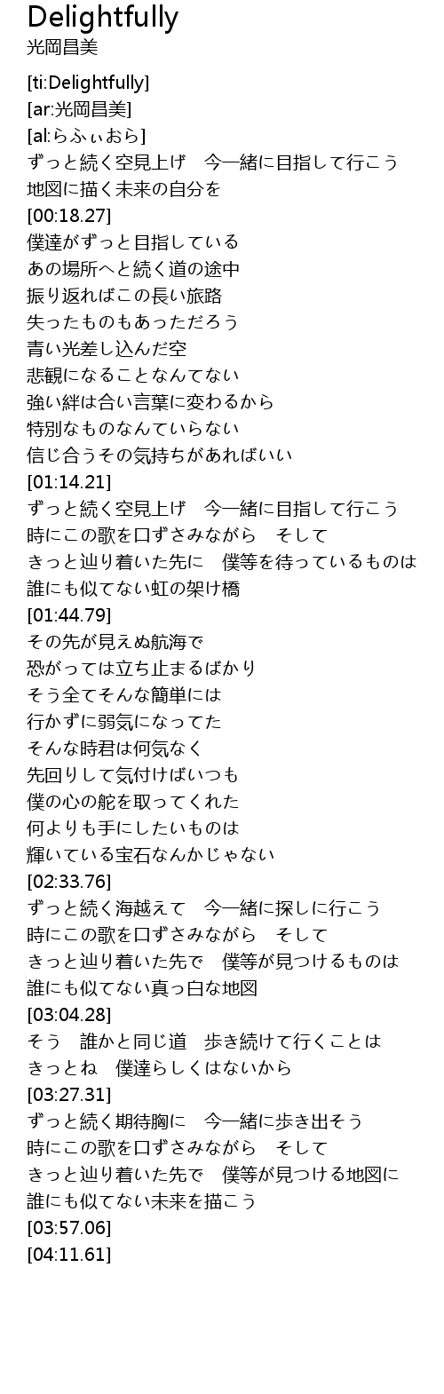 | [01:23.18] | 時にこの歌を口ずさみながら そして |