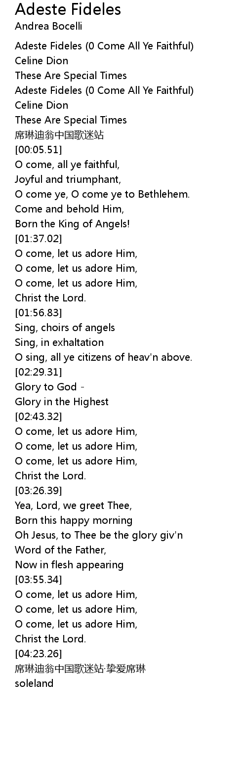 | [00:02.38] | Adeste Fideles 0 Come All Ye Faithful |