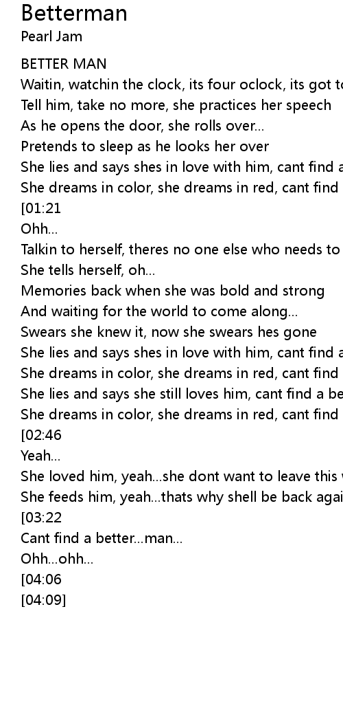 [02:38] She dreams in color, she dreams in red, cant find a better man...