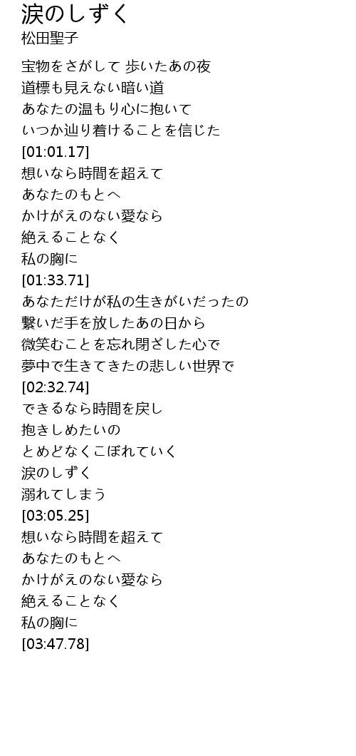 | [01:44.16] | あなただけが私の生きがいだったの |