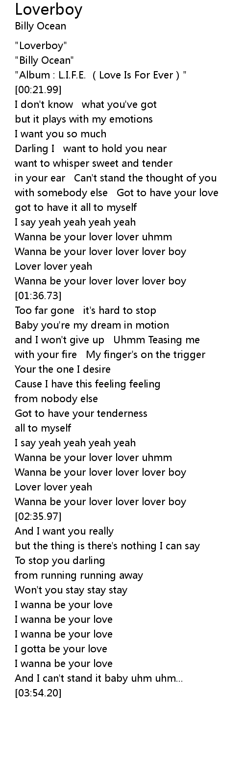 | [01:22.91] | Wanna be your lover lover lover boy |