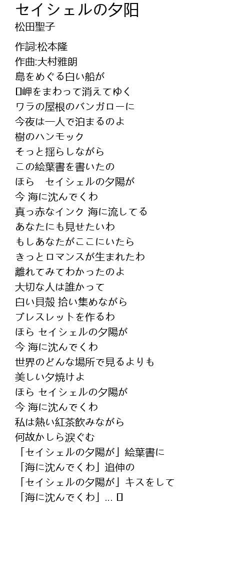 | [03:34:00] | 「セイシェルの夕陽が」キスをして |