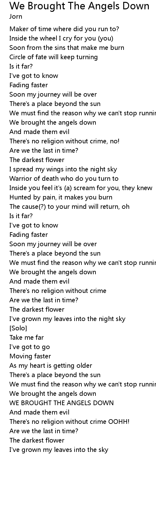We brought the angels down |