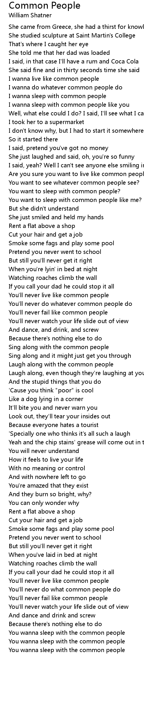I wanna sleep with common people |