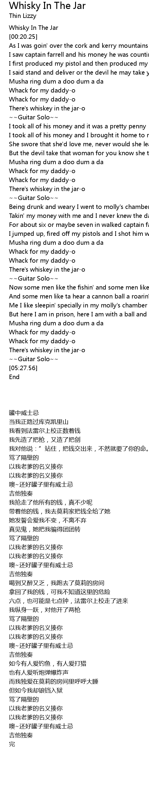 [00:01.25] Whisky In The Jar