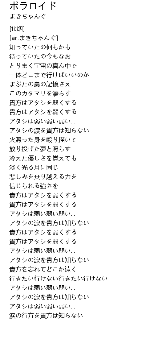 | [03:23.119] | 貴方はアタシを弱くする |