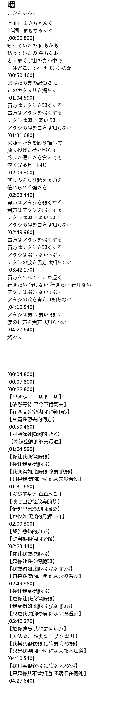 | [04:12.500] | アタシは弱い 弱い 弱い |