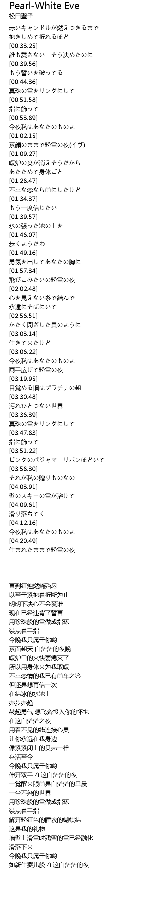 | [03:41.71] | 真珠の雪をリングにして |