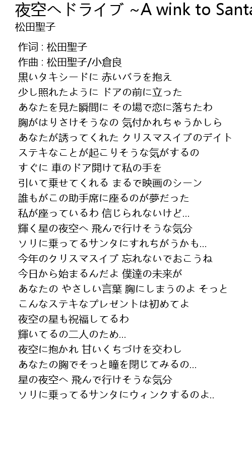 | [03:51.718] | ソリに乗ってるサンタにウィンクするのよ.. |