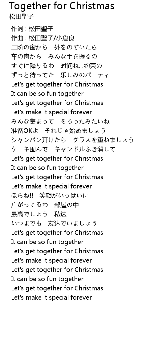 | [03:09.462] | Let's get together for Christmas |