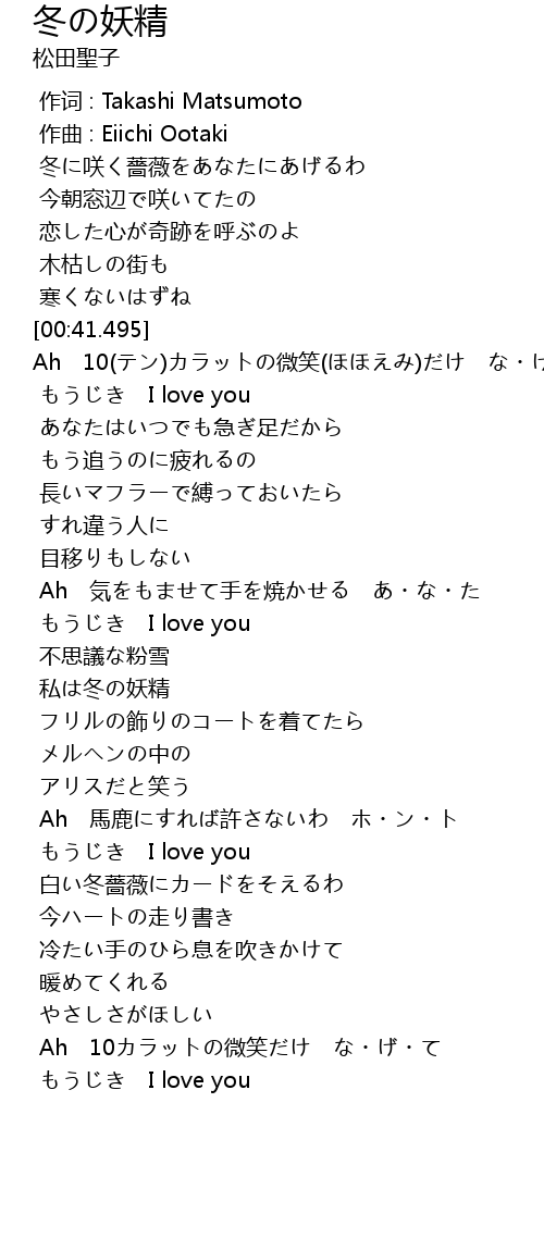 | [00:00.000] | 作词 : Takashi Matsumoto |
