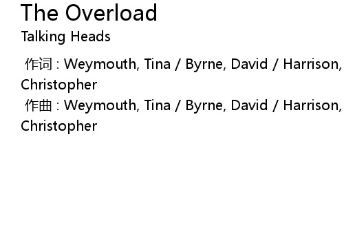 | [00:00.000] | 作曲 : Weymouth, Tina / Byrne, David / Harrison, Jerry / Frantz, Christopher |