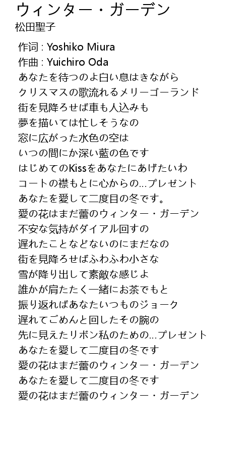 | [03:01.992] | 愛の花はまだ蕾のウィンター・ガーデン |