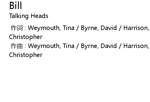 | [00:00.000] | 作曲 : Weymouth, Tina / Byrne, David / Harrison, Jerry / Frantz, Christopher |