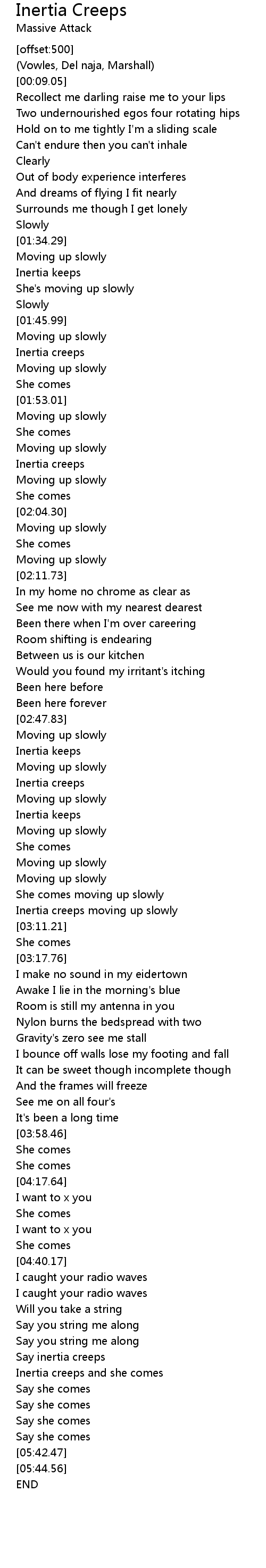 Inertia creeps and she comes |