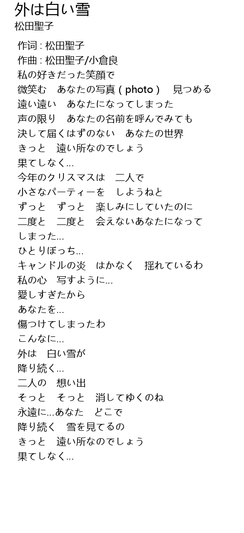 | Song | 外は白い雪 |