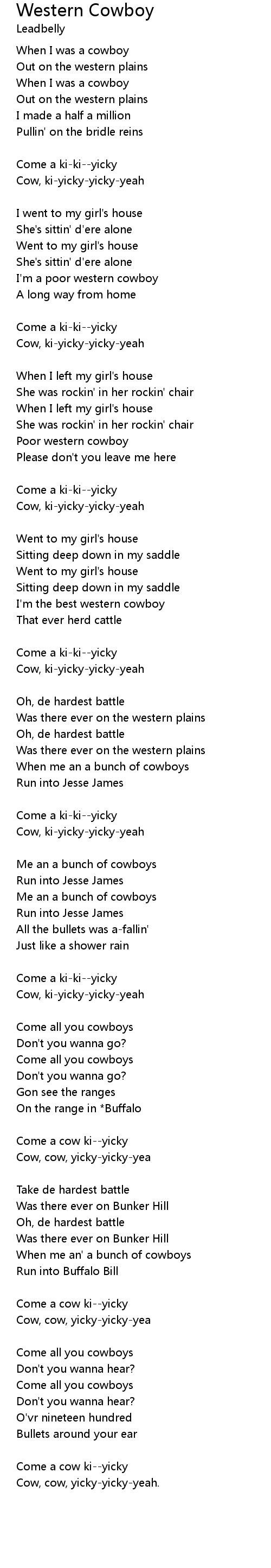 Western Cowboy Lyrics