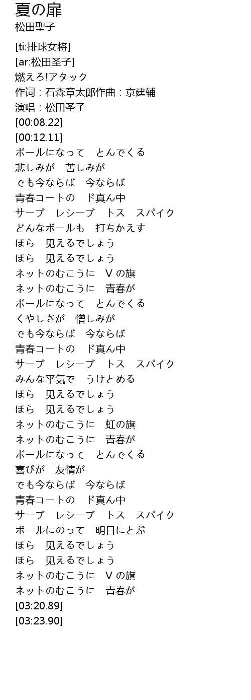 | [00:43.69] | サーブ レシーブ トス スパイク |